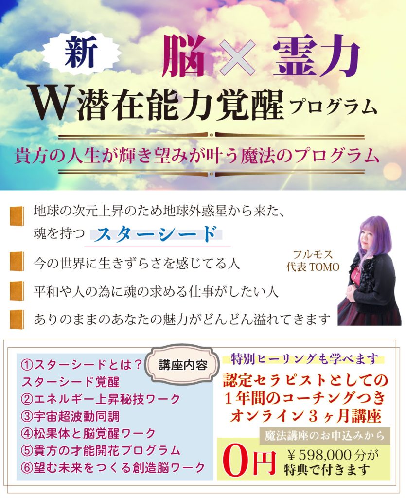 チャネリング、チャクラトリートメント、アカシックと3ヵ月講座の内容が盛り沢山だった事にビックリしたのが率直な感想です。私は既に、この講座を受ける前に他校で120万円ほどかけて受講していたのですが、こちらの魔法講座を知り、実際に受講してみて、学べる内容がめちゃくちゃ濃いなと思い、本物だと思いました。その中でも、特に私が興味を持ち、学べて良かったと思ったのは、アカシックです。アカシックだけを学ぶにしても、通常は高額な講座が多いですよね。でも、TOMOさんの主催する講座は、良心的な受講料でありながら、他のアカシックとは決定的な違いがあり、コレを自分が、クライアントさんに出来たら最高だと思いました。私は、この魔法講座と出会い、アカシックが学べ本当にラッキーでした。